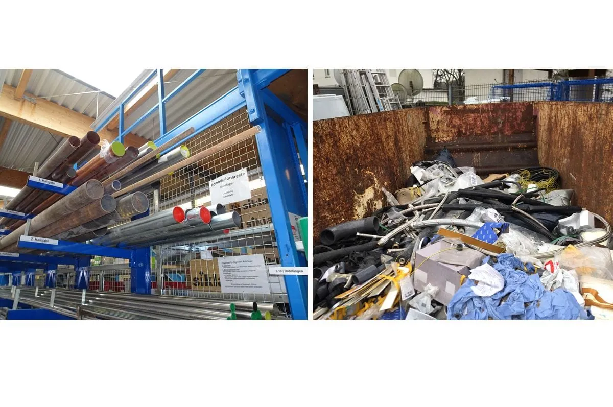 In vielen Betrieben verstopfen überschüssige Kommissionsreste das Lager. Sie rauben Fläche, nehmen die Übersicht und verursachen Suchzeiten. Wenn Material von der Baustelle zurückkommt, muss zwischen Standardmaterial und Kommissionsresten unterschieden werden: Standardmaterial darf ins Lager zurück, Kommissionsreste nicht.