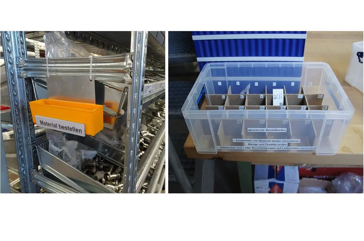 - Jeder Mitarbeiter (vom Azubi bis zum Chef) kann bei Entnahme über die Bestellkarte die Bestellung auslösen.