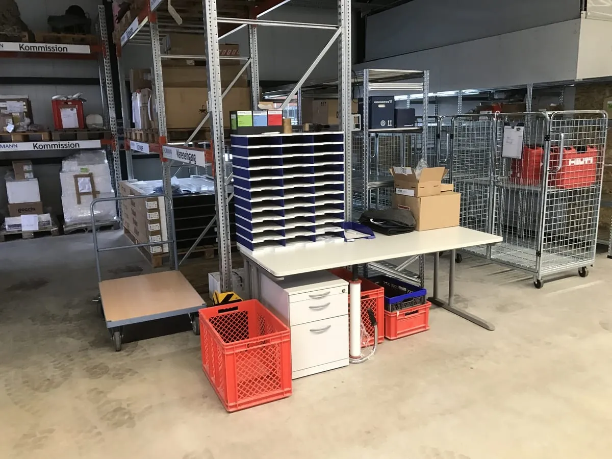 - Definierten Platz als Warenannahme im Betrieb einrichten. Die Warenannahme ist ein Arbeitsplatz, der mit Cutter, Blechschere, Filzstift und Kommissionsaufkleber ausgestattet ist.