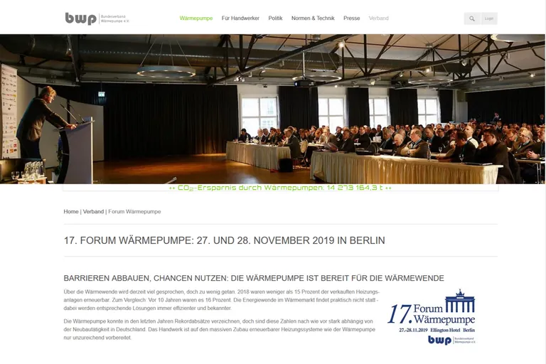 Das 17. Forum Wärmepumpe möchte diese Hindernisse mit Politik und Wissenschaft diskutieren sowie Lösungsansätze und Chancen aufzeigen. Erneut erwarten wir über 200 Teilnehmer aus allen Bereichen der Wärmepumpenbranche“, erklärt der BWP zum Wärmepumpen-Forum.