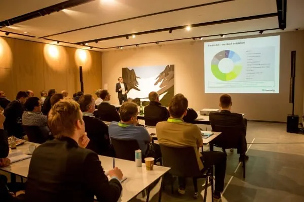 Als Ergänzung zu den Fachreferaten und Best-Practice-Beispielen im großen Podium wurden in zahlreichen Seminaren Einzelaspekte der Tagesthemen vertieft. Prof. Dr.-Ing. Michael Günther entwickelte vor dem Hintergrund des sich in der Entwurfsphase befindlichen Gebäudeenergiegesetzes (GEG) ein Szenario für die Weiterentwicklung der HLS-Systeme. Dass sich Monitoring trotz der entstehenden Mehrkosten durch Einsparungen von Investitionskosten und vor allem durch die Verlängerung des Lebenszykluses einer Anlage rechnet, bewies beispielsweise Thomas Geck, Geschäftsführer der Uponor-Tochtergesellschaft Delta GmbH in seinem Seminar.
