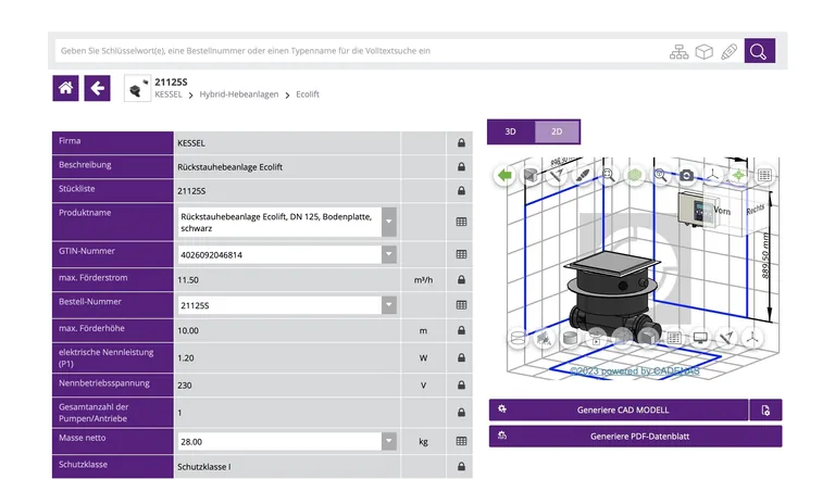 Unter www.kessel.de/bim finden Nutzer in den Bereichen Rückstauschutz, Hybrid-Hebeanlagen, Abscheide-, Pumpen- und Ablauftechnik sowie Technikschächte und Zubehör schnell und intuitiv zum jeweiligen Produkt. Eine Suche nach Stichwörtern, Artikelnummern oder im „Volltext“ navigiert ebenfalls ganz einfach zum gewünschten Ziel. Nach einer kostenfreien Registrierung stellt Kessel die selektierten Daten zum Herunterladen bereit, die sich direkt in BIM-Modelle oder einer TGA-Software integrieren lassen.