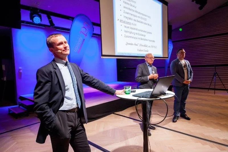 Prof. Dr. Ing. Klaus Fitzner, Geschäftsführer der Klimakonzept Ingenieurgesellschaft b. R., Berlin, führte mit seinem Fachvortrag in die Geschichte, die Gegenwart und die Zukunft ein. Die Digitalisierung schaffe die Voraussetzungen, um den personenbezogenen Mindestvolumenstrom exakt zu ermitteln und damit die Luftqualität zu optimieren. Die Ideen und Anforderungen der DIN 1946-6 als einschlägige Norm für die Auswahl und Auslegung von Lüftungssystemen für Wohnungen stellte Prof. Dr. Thomas Hartmann vom Institut für Technische Gebäudeausrüstung, Dresden, anschaulich dar. Er beschrieb das Spannungsfeld zwischen den gestiegenen Anforderungen an die Energieeffizienz und der Herausforderung, lüftungsrelevante Schäden durch Schimmelpilze zu vermeiden. Zudem wurde im Rahmen des Vortrags der Ende 2017 vorgelegte Neuentwurf der Norm diskutiert und die wesentlichen Neuerungen beleuchtet.