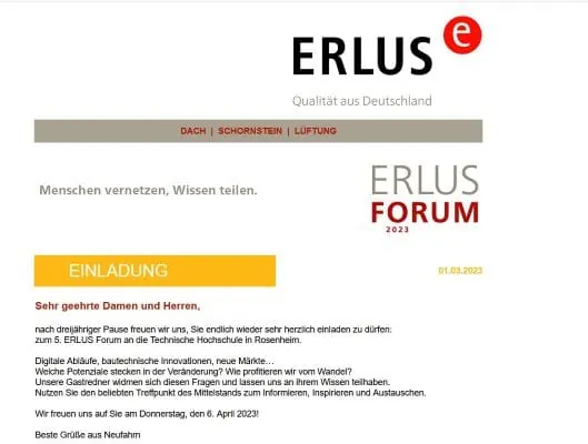 Weitere Informationen sowie Anmeldeunterlagen per E-Mail an forum@erlus.com anfordern.