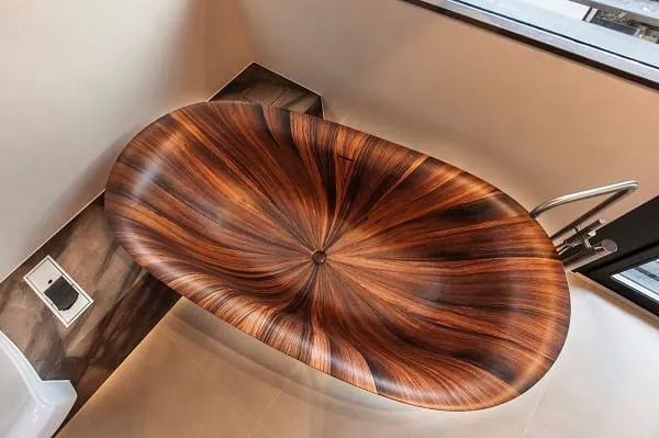 Ebenso drängt Holz als beliebtes Material in den Vordergrund. Besonders im Trend lägen Holzarten mit ausgeprägter Maserung, auffälliger Struktur und individueller Optik, die sich von den homogenen Hölzern des Scandi-Styles abheben. Ungebrochen sei der Trend zu Klarheit, Freiheit und Großzügigkeit im Badezimmer. Ein Beispiel dafür sind transparente Glasflächen, die rahmenlos und bodengleich in die Raumarchitektur integriert werden. Der Trend der transluzenten Glasoberfläche wird in farblicher Vielfalt dabei ebenso im weiteren Interieur aufgegriffen.
