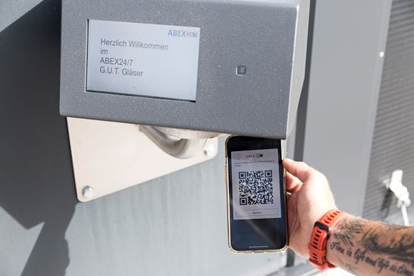 Über die G.U.T.-App meldet sich der G.U.T.-Kunde mit seinen Zugangsdaten bei G.U.T. Online Plus an. Im Bereich „24/7“ kann er sich automatisch einen QR-Code erzeugen lassen, mit dem sich die Türen des Abex 24/7 öffnen lassen. Über den Scan erhält er Zugang zum Verkaufsraum und wird für den Einkauf freigeschaltet. Sind die Produkte im Einkaufskorb, müssen nur noch die Lagerplatzetiketten am Regal mit der App gescannt und die Artikelmengen eingetragen werden.