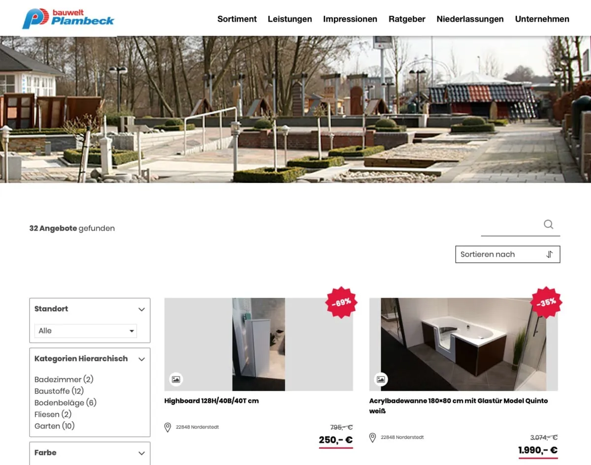 Die ersten Live-Einbindungen des Tools sind bereits online bei Händlern wie Plambeck Baustoffcentrum unter www.plambeck-baustoffcentrum.de/marktplatz oder C.J. Wigger unter www.cjwigger.de/sonderverkauf/mn_27438.