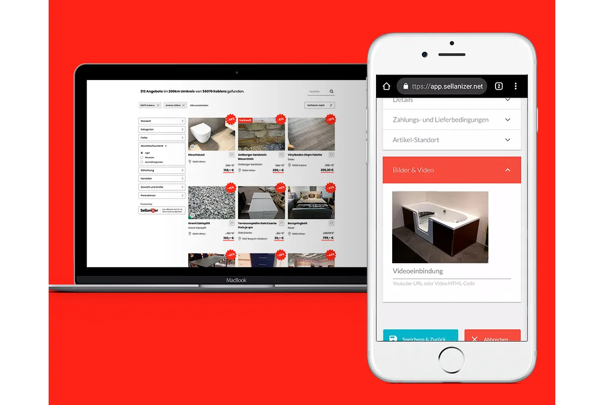 Die mit dem Sellanizer erfassten Artikel können, wenn gewünscht, mit einem Klick samt Preis und Standort auf der eigenen Website des Großhandels/Handels oder Handwerkers und zudem auf den angeschlossenen Kleinanzeigenportalen und Internetseiten präsentiert werden. Sucht ein Interessent also beispielsweise via Google nach Badewannen, dann können ihm in den Suchergebnissen auch die regionalen Abverkaufsangebote angezeigt werden.