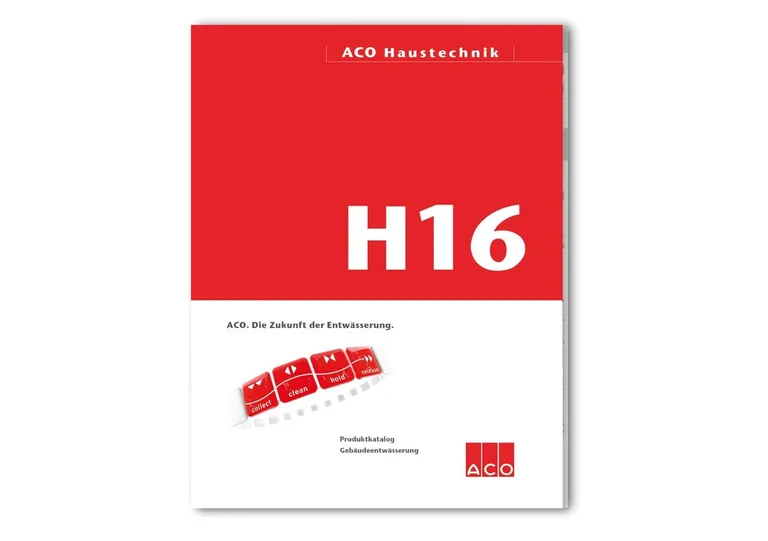 Der Produktkatalog H16 beinhaltet auf 300 Seiten das ACO Haustechnik Produktportfolio der Bereiche Rinnen, Abläufe, Badentwässerung, Fettbabscheider, Rückstauverschlüsse, Hebeanlagen und Pumpstationen.