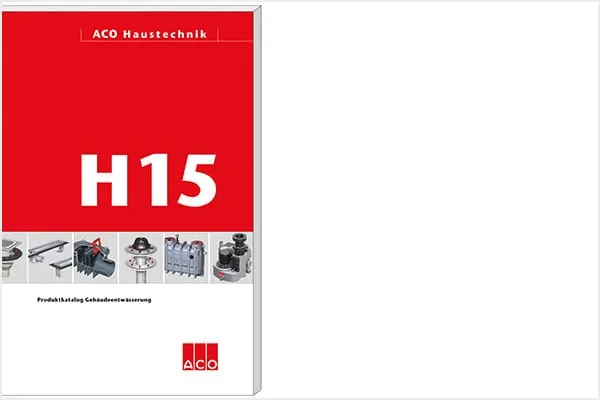 Der Produktkatalog H15 von Aco Haustechnik umfasst auf 386 Seiten die Produkte des Sortiments aus den Bereichen Entwässern, Abscheiden und Pumpen. – © ACO Passavant GmbH