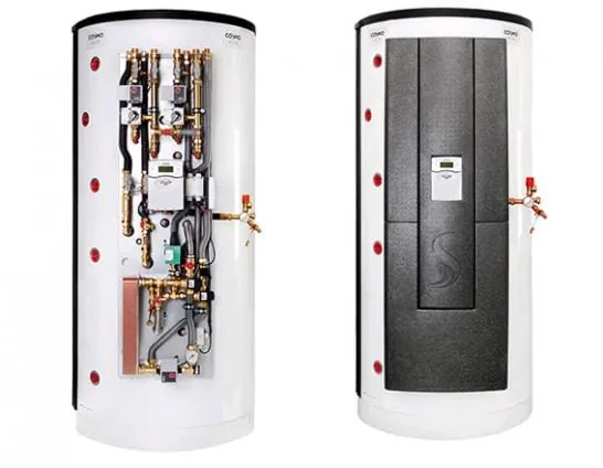 Der Systemspeicher CPSS  von Cosmo beinhaltet alle Komponenten, um Solarenergie mit einem ergänzenden Wärmerzeuger zu speichern und zur Trinkwasser- und Heizungserwärmung bereitzustellen.