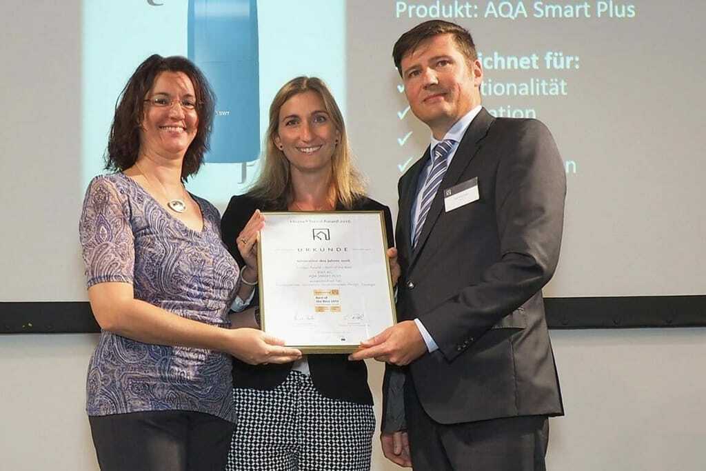 Die Besonderheit des „Home & Trend Awards“ ist das zweistufige Verfahren: Neben einem Expertenteam bewerten auch Endkunden die eingereichten Produkte und Konzepte. In beiden Bewertungsrunden wurde „AQA smart Plus“ eine hervorragende Produktleistung verbunden mit einer überdurchschnittlich hohen Verbraucherorientierung bescheinigt.