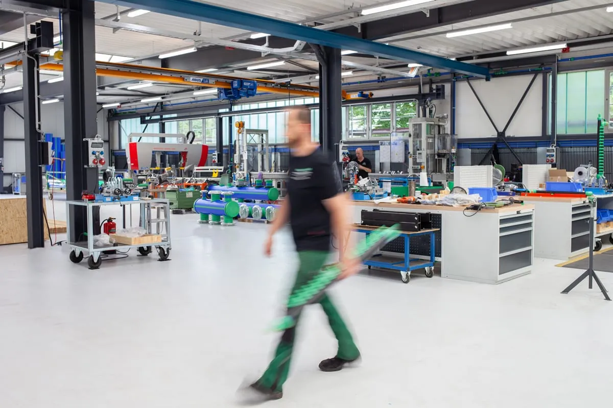 Zwei neu installierte Portalkräne im vorderen Bereich der Halle und die Erweiterung eines Krans im hinteren Bereich ermöglichen es den Mitarbeitern, an nahezu jeder Stelle des Gebäudes an schweren Bauteilen zu arbeiten. Durch eine Anhebung des Vorplatzes können größere Verteiler mit dem Stapler direkt aus der Fertigung herausgefahren werden.