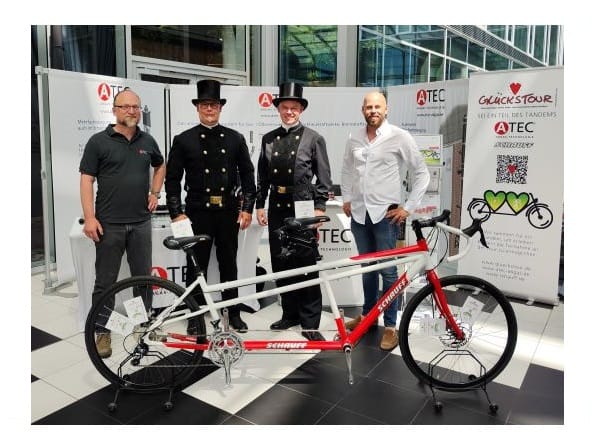 Mit einer besonderen Kooperation unterstützt die Atec GmbH & Co. den Verein „Glückstour e. V. – Schornsteinfeger helfen schwerst- und krebskranken Kindern“. Zusammen mit der Fahrradfabrik Schauff GmbH & Co. KG aus Remagen stellt das Unternehmen ein Tandem zur Verfügung. Mit gemeinsamer Kraftanstrengung sollen so die Kindern die Glückstour live erleben.