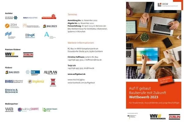 Im Wettbewerb „Auf IT gebaut – Bauberufe mit Zukunft“ werden seit 2002 innovative und praxisnahe Digitallösungen für die Bauwirtschaft gesucht. Auf der Webseite www.aufitgebaut.de können jetzt schon Beiträge für die neue Ausschreibungsrunde angemeldet werden.