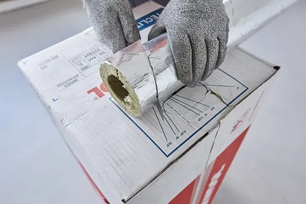 „Wir haben dieses System nach sehr guten Erfahrungen auf anderen Baustellen mit angeboten und durch die Kombination von Rockwool-Systemen für Wärmedämmung, Kältedämmung und Brandschutz überzeugt“, erklärt Opitz. „Das System Teclit ist perfekt abgestimmt auf die Brandabschottungen Conlit und wird im Grunde genauso verarbeitet wie die Rockwool Rohrschalen für den Wärmeschutz. Die Verarbeitung geht deshalb zügig voran, Planer und Investoren vertrauen Rockwool“, begründet er seine Vorliebe. Rund 20.000 m Rohrleitungen haben seine Mitarbeiter in den sieben Geschossen des Centrums für Integrierte Onkologie (CIO) der Uniklinik Köln verlegt und den überwiegenden Teil auch isoliert, davon etwa 2.800 m Kälteleitungen mit dem System Teclit von Rockwool. Die Rohrschalen Teclit PS Cold sind nicht brennbar nach DIN 13501, mit A2L-s1, d0 klassifiziert und UV-beständig. Ausgestattet mit einer stabilen glasfasernetzverstärkten Alukaschierung und selbstklebender Überlappung an der Längsfuge sind sie schnell zu verarbeiten. Wie der Hersteller erklärt, entsteht eine robuste und hochwertige Dämmung von Kaltleitungen in kurzer Zeit.