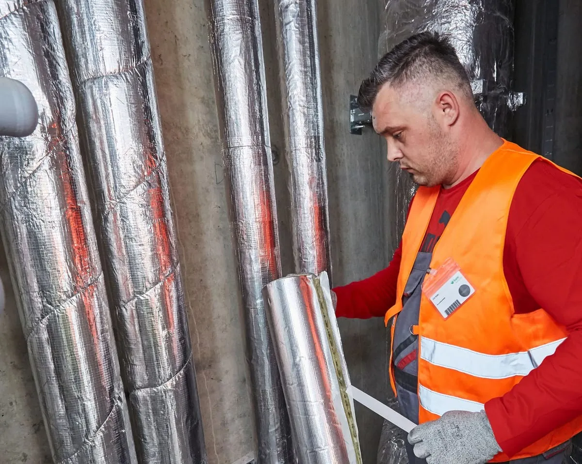 „Die neu entwickelte Aluminiumkaschierung des Systems ist extrem belastbar. In der Bauphase sind Rohrschalen und Dämmmatten deshalb wenig anfällig für Beschädigungen von außen. Wird die Kaschierung dennoch verletzt, so ist das sofort zu sehen, weil die grüne Steinwolle sichtbar wird. Mit dem Teclit Alu-Tape ist das Problem dann schnell gelöst. Das System macht es uns leicht, eine vollkommen dichte Isolierung der Kälteleitungen zu erstellen“, berichtet Opitz. „So können wir nahezu garantieren, dass jede noch so kleine Beschädigung von uns erkannt und verschlossen wird.“ Auch die mit der Abnahme befassten Bauleiter hätten diese Stärke des Systems auf allen Baustellen gelobt. „Beschädigungen an z. B. schwarzen Schaumglasisolierungen sind deutlich schwerer auszumachen.“