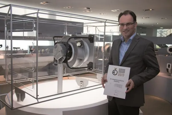 Der Radialventilator RadiPac von ebm-Papst hat beim German Design Award 2017 das Prädikat „Special Mention“ in der Kategorie „Energy“ erhalten. Mit dieser Auszeichnung würdigt die Jury Produkte, deren Design besonders gelungene Teilaspekte oder Lösungen aufweisen. Im Fall des RadiPac ist das die signifikante Verbesserung von Effizienz, Leistung und Gewicht.