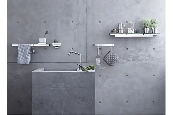 Die Axor Universal Accessories sind ein formalreduziertes und kollektionsübergreifendes Zubehör-System, das aus verschiedenen Relings, Ablageelementen und Halterungen besteht. Es kann als Einzel- oder als Systemlösung im Bad und in der Küche eingesetzt werden. „Aus hochwertigen Einzelkomponenten entstehen visuell ansprechende und zugleich harmonische Accessoire-Gesamtlösungen. Bei Bedarf können sie neu ausgerichtet oder sogar um weitere Elemente ergänzt werden. Die individuelle Gestaltung des Raumes wird somit entscheidend erleichtert“, so Philippe Grohe, Vice President Design Management der Hansgrohe SE.