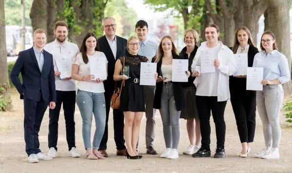 Das entscheidende Quäntchen überzeugender waren Stefanie Steinmeyer (Platz 1, Eisen-Fischer GmbH), Dajana Tica (Platz 2, Reisser AG) und David Bauer (Platz 3, Gienger München KG). Ebenfalls starke Nerven bewiesen die Viertplatzierten Tristan Gilmer (Richter+Frenzel Aschaffenburg GmbH), Julia Göpfert (Richter+Frenzel Landshut GmbH), Magdalena Naser (Richter+Frenzel Würzburg GmbH), Laura Ribas-Vicaria (Dr. Kurt Korsing GmbH & Co. KG) und Oliver Röpkes (Friedrich Detering GmbH).