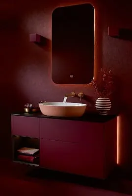 Unterstützt wird dieser Eindruck durch die betont horizontale Linienführung des grifflosen Möbeldesigns. Dadurch ergibt sich bei einer Aneinanderreihung der Module auch optisch eine Analogie zum Küchendesign. Das Badezimmer wird zunehmend auch zum Lifestyle-Zimmer.