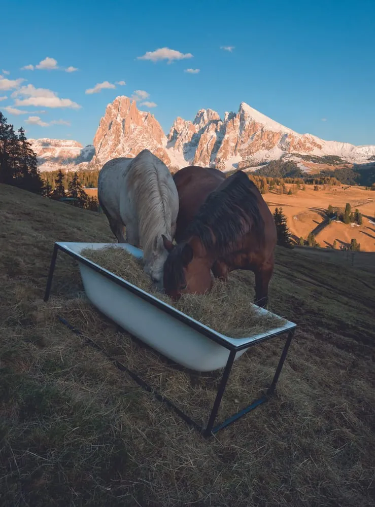Das dachte sich auch FotografRafael Krötz, der für das SZ-Magazin eine aufwendige Fotostrecke angefertigt hat. Badewannen von renommierten Sanitärunternehmen bildeten Futterkrippe, Schweinetrog und Trinkplatz von Pferden, Schweinen und Kühen. So sind Aufnahmen entstanden, die den Blick des Betrachters in den Bann ziehen und aktuelle Wannen-Modelle einmal anders präsentieren: im alpinen Raum, umringt von Tieren. Die vollständige Fotoproduktion finden Sie hier.