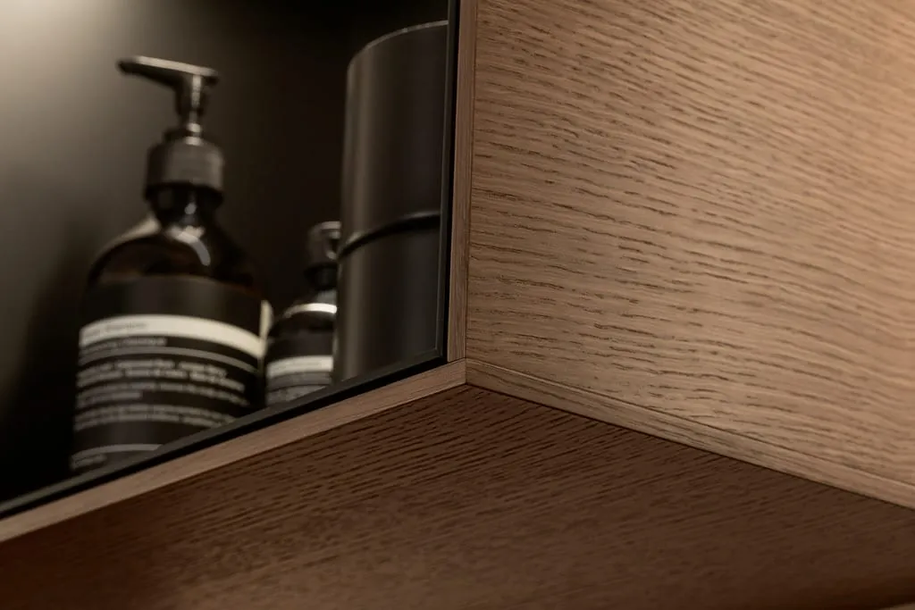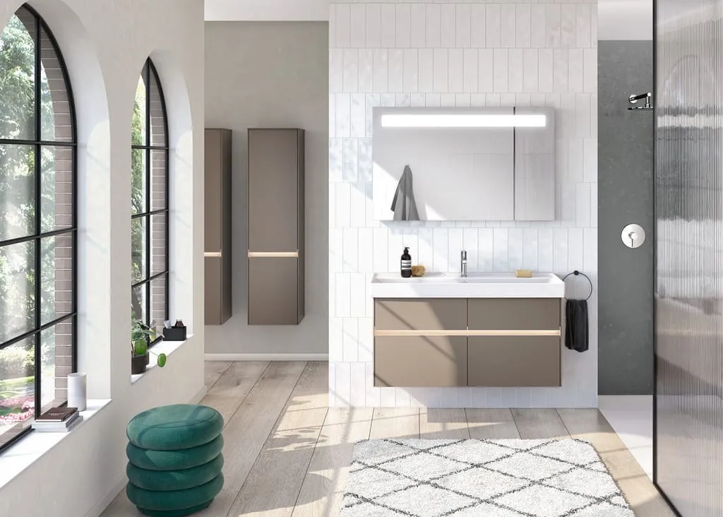 Nicht nur bei den Farben, auch bei den Materialien gibt die Natur 2020 den Ton an. Ein ungebrochener Trend sind Möbel in authentischer Holzoptik. Für die Badmöbel der Serien Legato, Avento und Collaro sind neue Oberflächen im Look von Eiche, Walnuss und Ulme erhältlich. Die Palette umfasst authentische helle und dunkle Holztöne sowie trendige weiße und graue Holzoptik. Besonders edel: Finion-Möbel mit Echtholzfurnier oder der Badezimmerspiegel Antheus in Walnuss oder Esche.