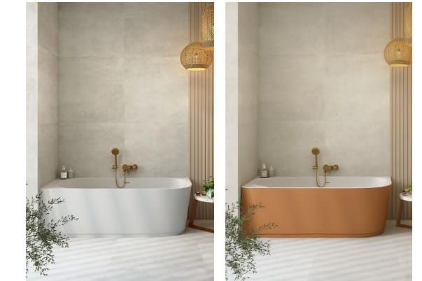 Die Wanne ist in einer rechten und einer linken Eckausführung erhältlich und kann farblich individuell angepasst werden: die BAY-Badewanne Monocolor und -Bicolor (rechts).