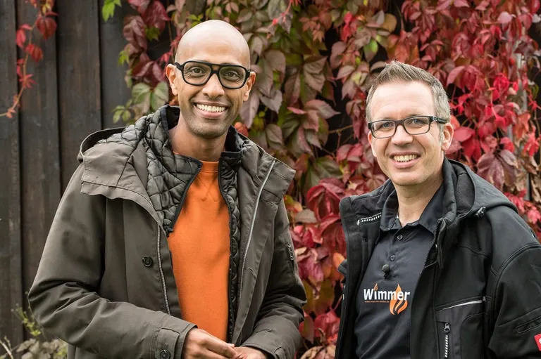 Fachhandwerker Tobias Wimmer, Geschäftsführer von Wärme Wimmer aus Gröbenzell, und TV-Moderator Amiaz Habtu stellen das Objekt in München vor. Eine Ölheizung soll durch eine umweltschonende Wärmepumpe ersetzt werden. Unter https://youtu.be/KldQ_-c6jlE finden Interessierte das erste Video.