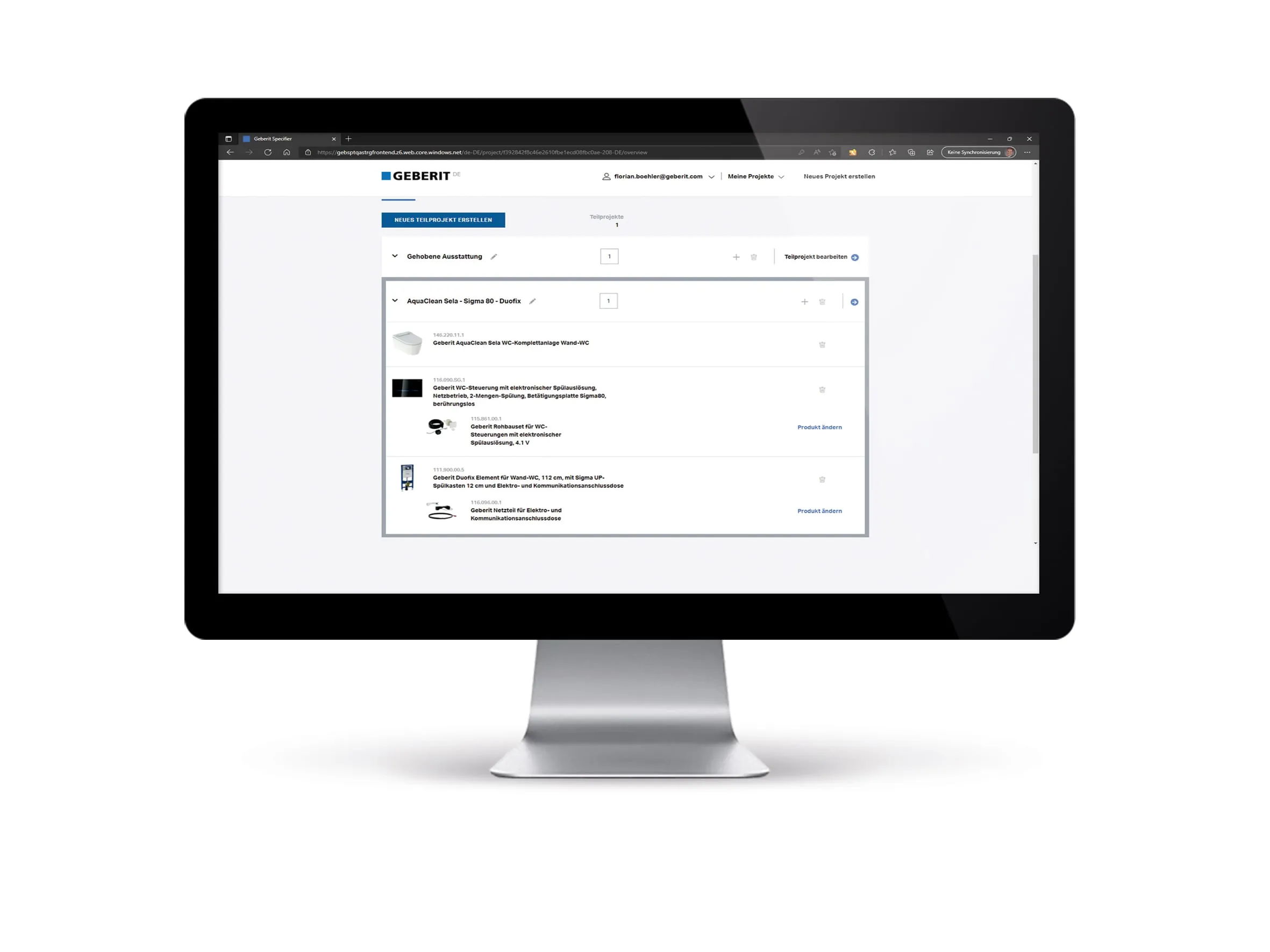 Planern und Installateuren erlaubt das Bemusterungstool dank der intuitiven Bedienung und der Kompatibilitätsschnittstelle eine schnelle und vor allem sichere Bemusterung. Das Tool ermöglicht es zudem, mehrere Projekte zeitgleich zu bearbeiten. Jedes Projekt lässt sich in beliebig viele Räume unterteilen, entsprechend der Anzahl im Objekt. Den einzelnen Räumen können dann wiederum die ausgewählten Geberit-Produkte zugewiesen werden. Planer erhalten so eine bessere Übersicht über das Gesamtprojekt, und Produkte werden nicht mehrfach zugeordnet. Auch verschiedene Ausstattungsvarianten für ein Objekt können abgebildet werden, in der Wohnungsplanung beispielsweise Standard oder Premium.