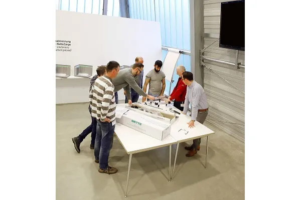 Im Rahmen der Veranstaltung werfen die Teilnehmer auch einen Blick hinter die Kulissen des Badspezialisten. Auf dem Programm stehen unter anderem das „Schallerlebnis“ im BetteBaulabor sowie auch ein Werksrundgang durch Produktion und Ausstellung. Die Teilnehmer können sich so selbst ein Bild von der Verarbeitungsqualität der Produkte aus glasiertem Titan-Stahl machen, die der Hersteller in einer Kombination aus Hightech-Produktion und handwerklicher Arbeit herstellt und bei Bedarf individualisiert. Außerdem lernen die Fachhandwerker hier auch, welche Vermarktungschancen sich aus dieser kombinierten Produktionsweise für sie ergeben.