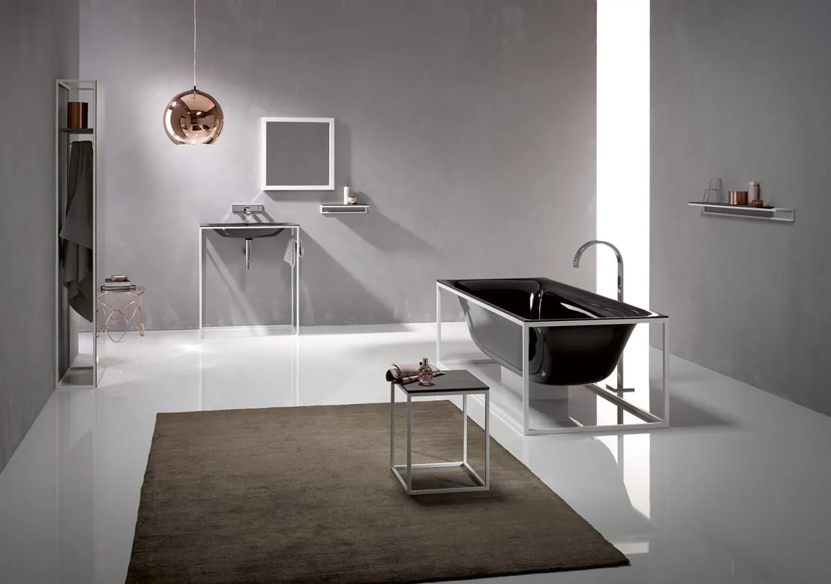 Der Designer überträgt mit der Skelettkonstruktion ein erfolgreiches Konzept aus der Architektur ins Interior Design des Badezimmers.