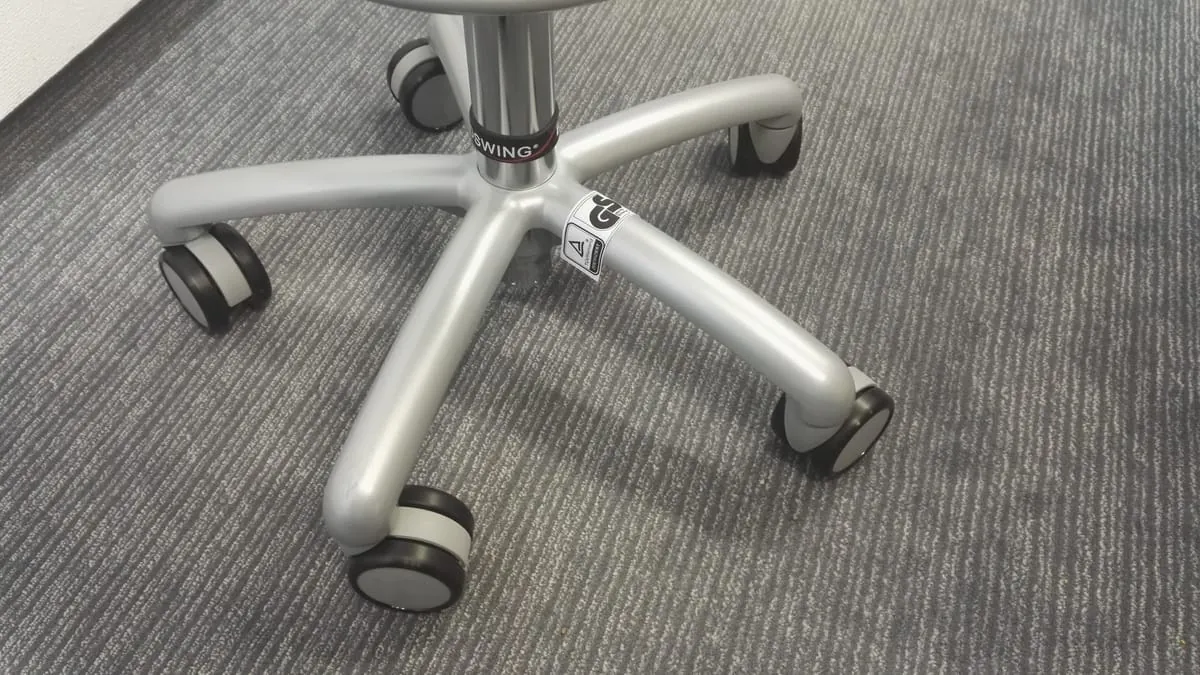 Funktionalität: Mit seinen sechs Kilo ist der Hocker sehr leicht und lässt sich mühelos bewegen oder von einem Büroplatz zum nächsten schieben. Verstärkt wird diese Leichtgängigkeit von den serienmäßig verbauten, selbstbremsenden, weichen Rollen, die bei uns auf Teppichboden gut einsetzbar waren. Laut Hersteller sei dies auf harten und weichen Böden so. Da der Hocker nicht über Armlehnen oder eine Rückenlehne verfügt, lässt sich nur die Sitzhöhe variabel einstellen. Dazu muss man einfach einen Hebel drücken. Die Einstellung erfolgt stufenlos von 44-57 cm und hat in unserem Test gut funktioniert.