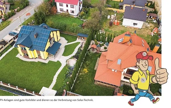 So wie der Pfiffikus seinem großen Vorbild dem Comic-Superhelden Superman nacheifert – so ist er übrigens auch zum Journalisten bei der Si geworden – brauchen auch andere ein Vorbild, um Gutes zu tun. Entscheidend dabei sei aber, zumindest in Sachen Solar-Anlage, was man sieht, wenn man aus dem Fenster seines Hauses schaut. In einer Studie hat der Pfiffikus jetzt nämlich recherchiert, das sei entscheidender als Einkommen, Bildungshintergrund oder das soziale Umfeld. Die Studie des Potsdam-Instituts für Klimafolgenforschung (PIK) zur US-Stadt Fresno zeigt auf, dass die Wahrscheinlichkeit selbst eine PV-Anlage zu installieren rapide steigt, wenn in nächster Nähe zum Eigenheim bereits eine installiert ist. Mit der Entfernung lasse dieser Effekt stark nach. So halbiere sich die Wahrscheinlichkeit schon über die Distanz von ca. 200 m – etwa die Länge eines Fußballfelds.