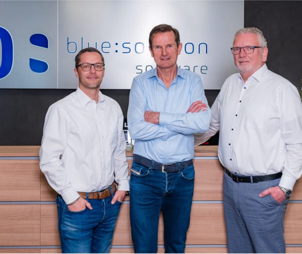 Geschäftsleiter Danny Braunsteiner, Geschäftsführer und Gründer Rudolf Melching und Geschäftsleiter Christof Schäfer (v. l.). – © blue:solution