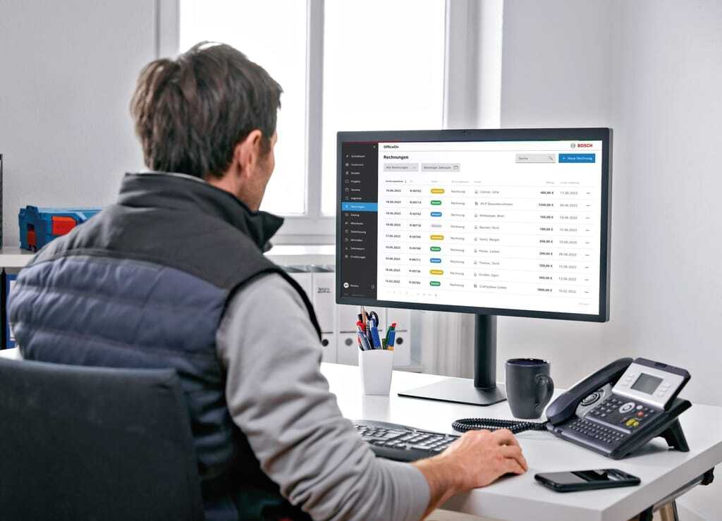 Bosch bietet speziell für kleinere Handwerksbetriebe mit OfficeOn eine einfache und übersichtliche Lösung zur zentralen und digitalen Verwaltung aller Schlüsselprozesse im Unternehmen. Die Cloud-Lösung verringert den Administrationsaufwand erheblich.
