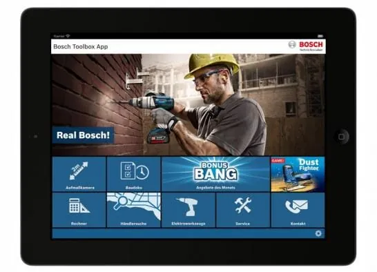 Seit August 2013 ist die App darüber hinaus auch auf dem iPad nutzbar. Damit greift Bosch den Trend der Tablet-Nutzung im Arbeitsalltag von Handwerkern auf und bietet einen weiteren auf die Zielgruppe zugeschnittenen Baustein an.