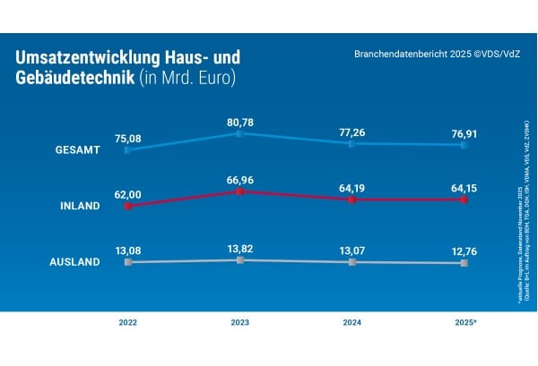 Anlässlich der VdZ-Mitgliederversammlung 2025 legen die Wirtschaftsvereinigung Gebäude und Energie (VdZ) und die Vereinigung Deutsche Sanitärwirtschaft (VDS) den aktuellen Branchenbericht 2025 zur Haus- und Gebäudetechnik vor. Er liefert eine umfassende Darstellung der wirtschaftlichen Lage von Industrie, Großhandel und Handwerk in den Bereichen Heizung, Sanitär sowie Klima/Lüftung.