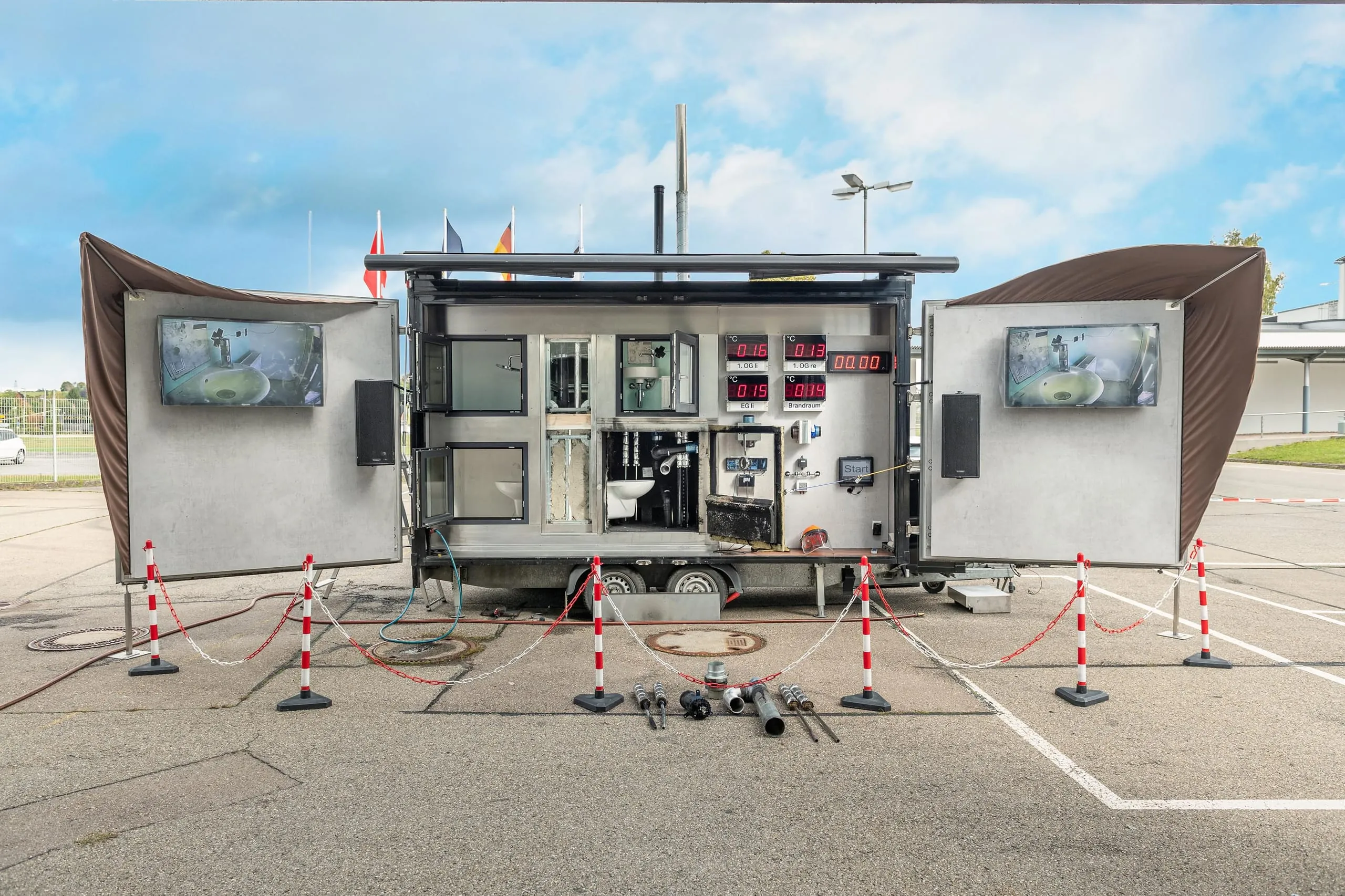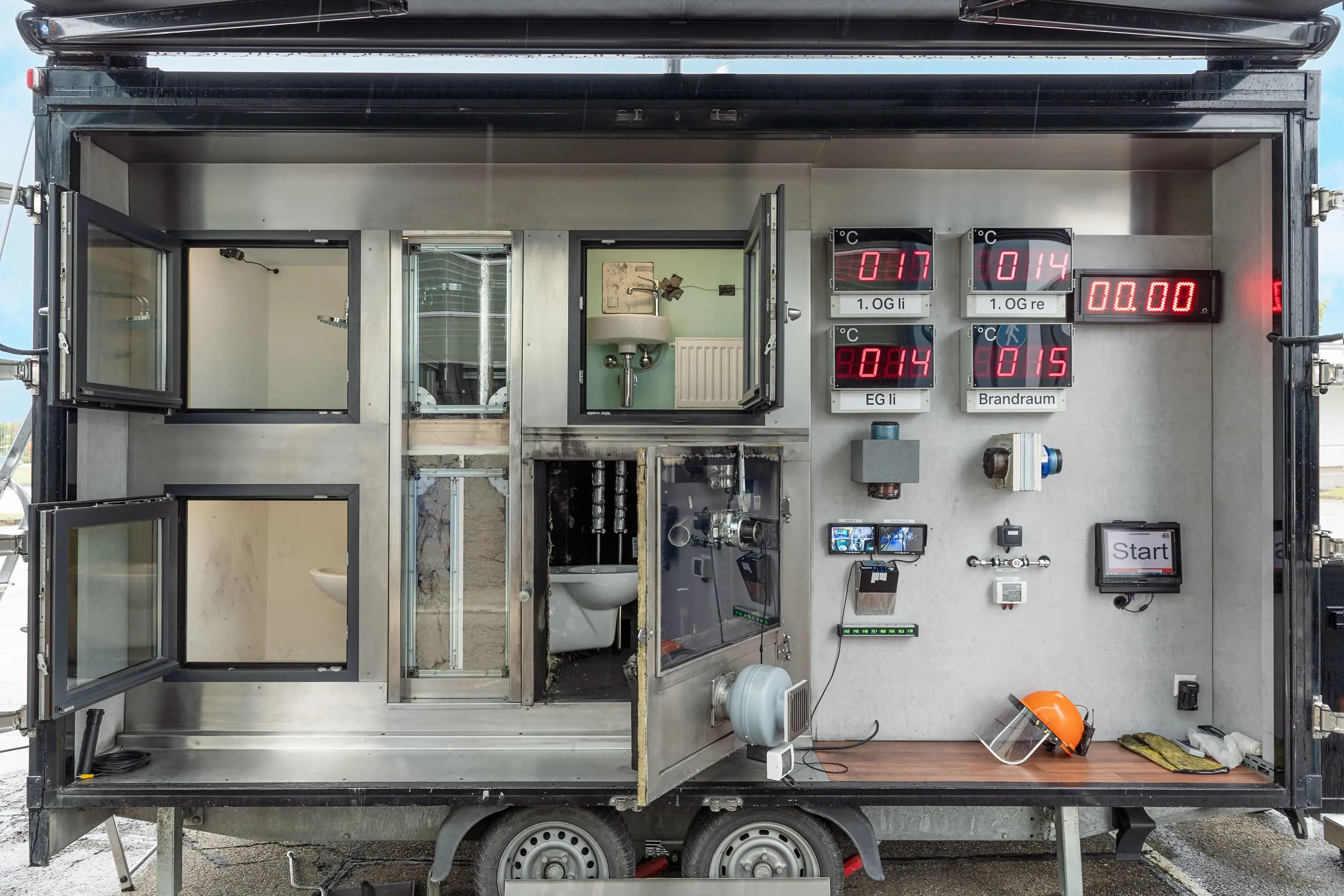 Um das Gefahrenpotenzial eines Brandes im Installationsschacht zu veranschaulichen und aufzuzeigen, wie mit den Rohrabschottungen von Geberit eine Ausbreitung von Feuer und Rauch verhindert werden kann, veranstaltet das Unternehmen regelmäßig das Brandlabor. Der spezielle, mobile Versuchsaufbau veranschaulicht, wie sich die Ausbreitung des Feuers in einem Installationsschacht verhindern lässt – durch verglaste und feuerbeständige Fenster live zu beobachten. „Mit dem Geberit Brandlabor möchten wir Installateurinnen und Installateuren zeigen, wie wichtig der Brandschutz im Installationsschacht ist. Im Brandfall kann so verhindert werden, dass sich Rauch und Feuer über die Installation in andere Brandabschnitte ausbreiten und Leben in Gefahr bringen“, sagt Bernd Prümer, Brandschutz-Sachverständiger sowie Inhaber von brandschutz.org.