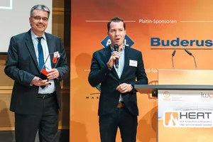 Preisübergabe des „Innovationspreises Wärmemarkt 2016“: „Die Heizzentrale von Brunner wird laufend nach neuesten technischen Gesichtspunkten weiterentwickelt, jüngst mit der Einbindung von Solarstrom. Damit lassen sich nahezu beliebige, hybride Heizsysteme mit geringem Installationsaufwand erstellen“, lautete die Begründung der Fachjury für die Auszeichnung. – © Ulrich BRUNNER GmbH