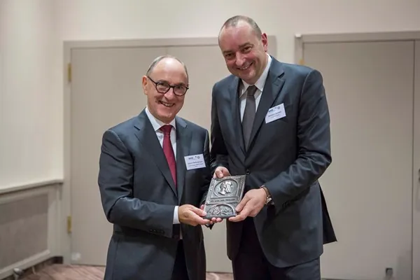 Der Präsident des BTGA, Hermann Sperber, überreichte Ulrich Pfeiffenberger die Hermann-Rietschel-Plakette im Rahmen des 1. TGA-Wirtschaftsforums in Berlin. Die Plakette erhielt Ulrich Pfeiffenberger für sein langjähriges Engagement für den Austausch und die zielorientierte Zusammenarbeit von Anlagenbauern, Komponentenherstellern und Planern.