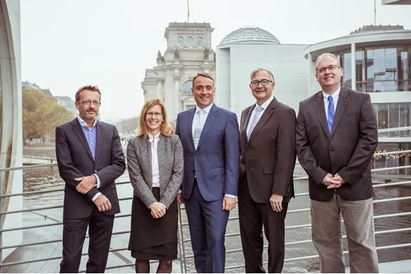 Der neue Vorstand des VfW v.l.n.r.: Dr. Volkhard Nobis, Annett Wettig, Till Reine, Peter Paul Thoma, Carsten Dittmar. – © VfW – Bundesverband für Wohnungslüftung e. V.