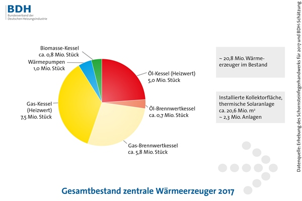 Der Anteil der Wärmepumpen am bundesweiten Bestand von knapp 21 Mio. zentralen Wärmeerzeugern liegt laut BDH und ZIV derzeit bei 5 %. – © BDH