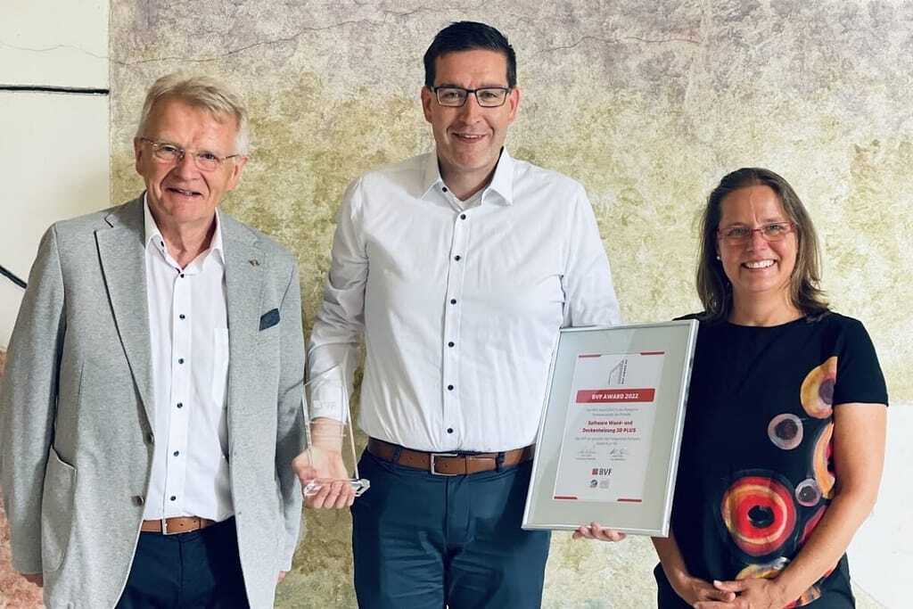 In der Kategorie Kühl- und Heizdeckensysteme erhielt die Kölner Hottgenroth Software AG den BVF Award für die Entwicklung des Zusatzmoduls Wand- und Deckenheizung 3D Plus. Die Software mit dem Zusatzmodul Wand- und Deckenheizung ist sowohl als Einzellösung als auch im Komplettpaket ETU-Planer erhältlich. Sie dient der schnellen Erfassung oder Übernahme von 3D-Gebäudedaten und -plänen. Berechnete Flächen können direkt in der integrierten Software für Gebäudemodellierung, HottCAD, verlegt und somit eine Auslegung schnell und effizient durchgeführt werden. Björn Wolff, COO der Hottgenroth Gruppe, erklärt: „Flächenheizung und -kühlung bestechen durch ihren geringen Temperaturanspruch und sind damit die idealen Partner für die fokussierte Wärmepumpentechnologie im Gebäudesektor. Wir freuen uns daher besonders, auch für die Bereiche Wand und Decke, in denen diese Systeme bisher noch wenig eingesetzt wurden, eine Lösung für den Fachmarkt zu etablieren.“