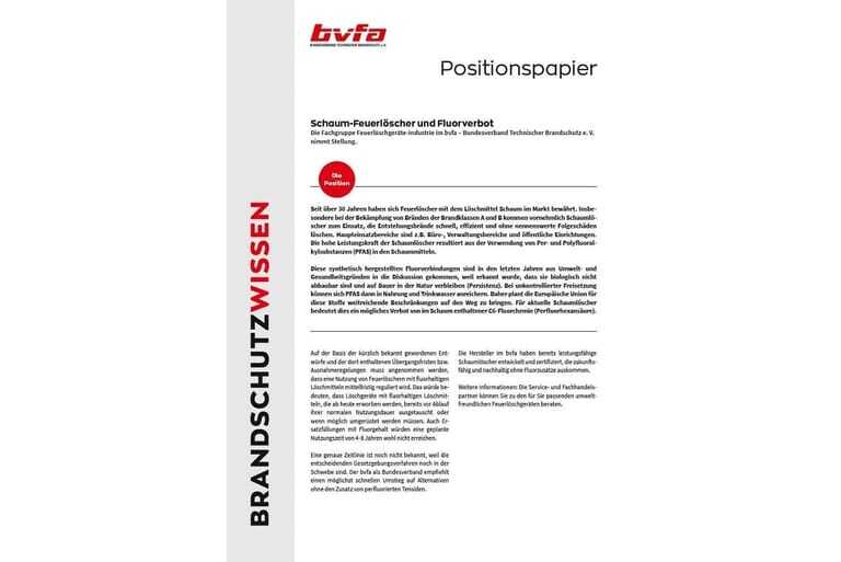 Cover des bvfa-Positionspapiers Schaum-Feuerlöscher und Fluorverbot. – © bvfa