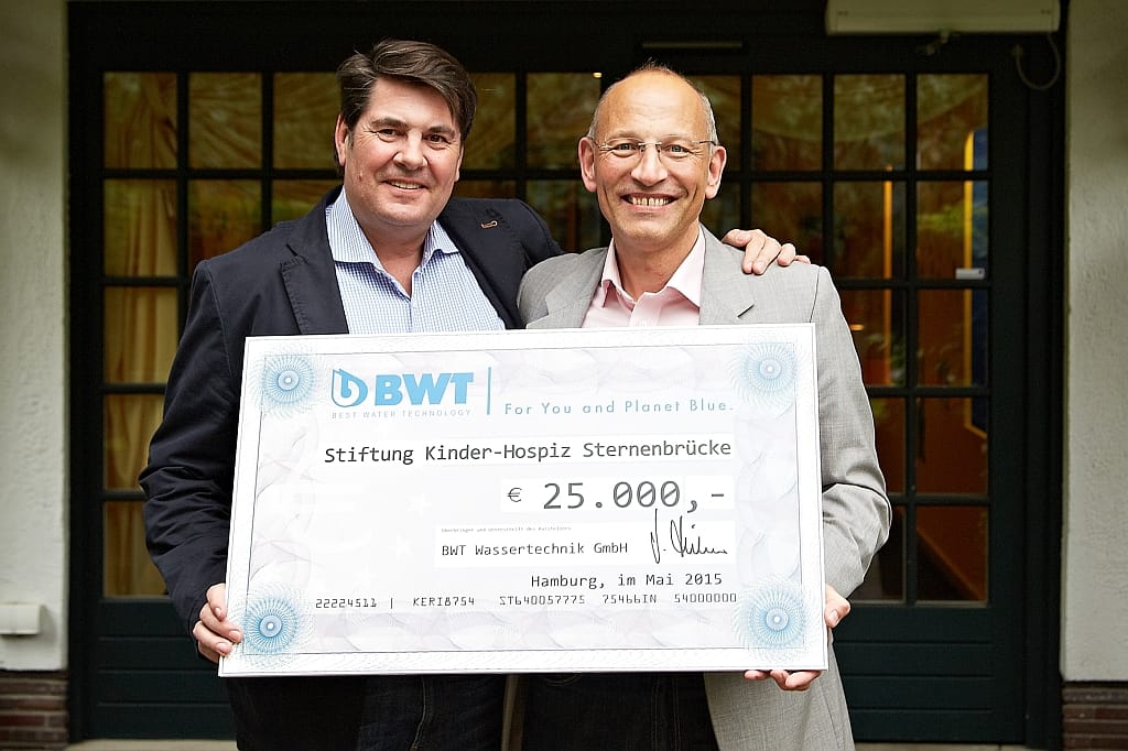 Nachdem der 25.000-Euro-Gewinncode bis zum letzten Messetag nicht gezogen wurde, entschloss sich BWT auch im Namen aller teilnehmenden Installateure, die Stiftung Kinder-Hospiz Sternenbrücke in Hamburg zum Gewinner zu machen.