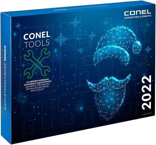 Der Hersteller für Installationstechnik Conel präsentiert pünktlich zur Adventszeit den Conel-Tools-Adventskalender 2022. Nach der Premiere 2021 geht der Adventskalender für Fachhandwerker damit dieses Jahr in Runde zwei.