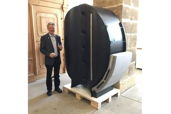 Die knapp 70 cm breiten Module lassen sich im Keller wie Bausteine aneinander fügen und zusammen dämmen. Über Rohre die zur Druckaufnahme durch die Behälter geschoben werden erfolgt gleichzeitig die Be- und Entladung des Speichersystems mit, laut Hersteller, sehr guter Speicherschichtung. Über optionale Vakuum-Isolationspaneele sollen sich die ohnehin schon geringen Wärmeverluste noch weiter reduzieren lassen.