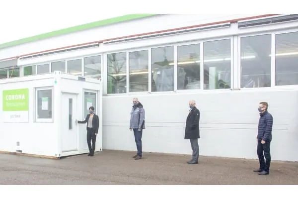 Die ersten Grünbeck-Beschäftigten nahmen bereits das Angebot der Teststation in Anspruch. – © Grünbeck Wasseraufbereitung GmbH