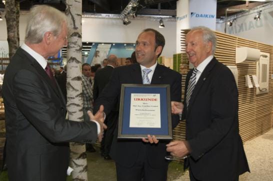 Der Europäische Wirtschaftssenat EWS hat Gunther Gamst (Geschäftsführer Daikin Airconditioning Germany) zum Wirtschaftssenator berufen. Zur Fachmesse Chillventa in Nürnberg überreichte Dr. Ingo Friedrich, Präsident des EWS, die Ernennungsurkunde zum „Wirtschaftssenator des Europäischen Wirtschaftssenats“ an Gunther Gamst. „Die Kälte-, Klima- und Wärmpumpentechnik ist ein wichtiger Schlüssel zur erfolgreichen Umsetzung der Klimaschutzziele der Europäischen Union. Daher ist es uns eine Ehre, den Klimaanlagen- und Wärmepumpenhersteller Daikin als Mitglied zu begrüßen, der sich mit seinem europaweiten Engagement für Energieeffizienz und CO2-Reduktion einsetzt“, begründete Dr. Ingo Friedrich die Ernennung. Der Europäische Wirtschaftssenat ist ein anerkanntes, überparteiliches und branchenübergreifendes Gremium erfolgreicher europäischer Unternehmen und Persönlichkeiten, die ihr Wissen und ihre Erfahrungen politischen Entscheidungsträgern beratend zur Verfügung stellen. Pro Branche wird jeweils nur ein Unternehmen als Mitglied aufgenommen.